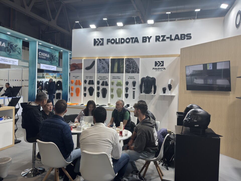 At the world level International Two-Wheeler Exhibition, RZLABs, the leading company in intelligent shock-absorbing material field, launched brand new series FOLIDOTA – the 1st 3D printed energy-absorbing material capable to pass CE with over 95% of impact energy absorption rate. This ground-breaking innovation became a centerpiece of the exhibition’s protective gear category, attracting strong interest from world-renowned top brands of helmet and riding gear.